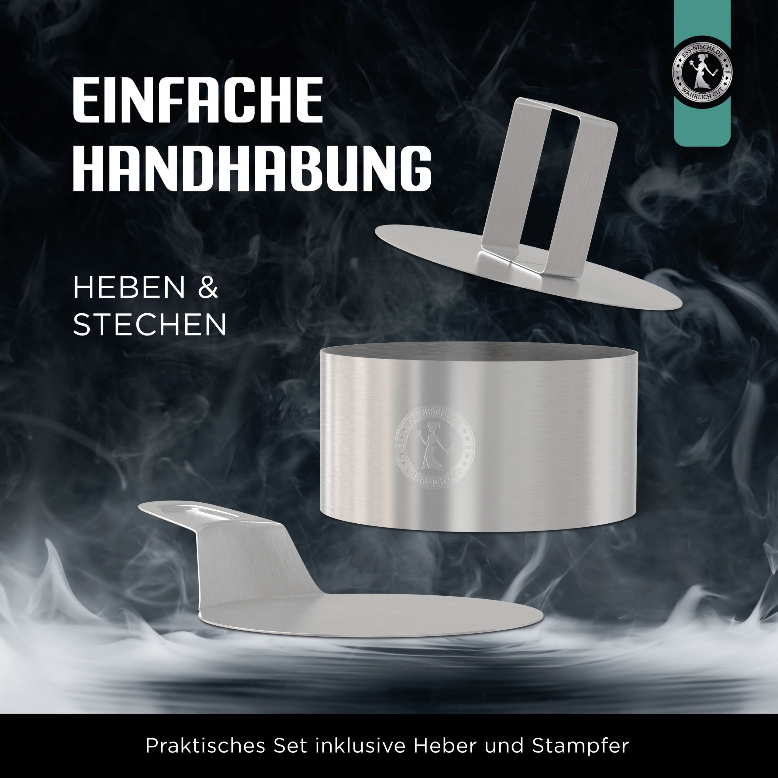 Ideal geeignet als BBQ Zubehör, Patty Presse, Tortenring Set, Burger Brötchen, Tartar Form, Brot Ausstecher, Spiegeleier Form und für runde Ausstechformen oder als Tartelette Ring.
